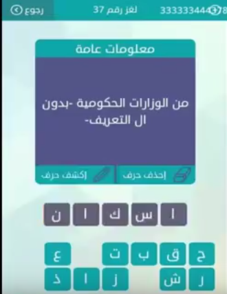 حل سؤال من الوزارات الحكومية بدون ال التعريف من لعبة وصلة المجموعة الخامسة لغز رقم 37 صقور الإبدآع