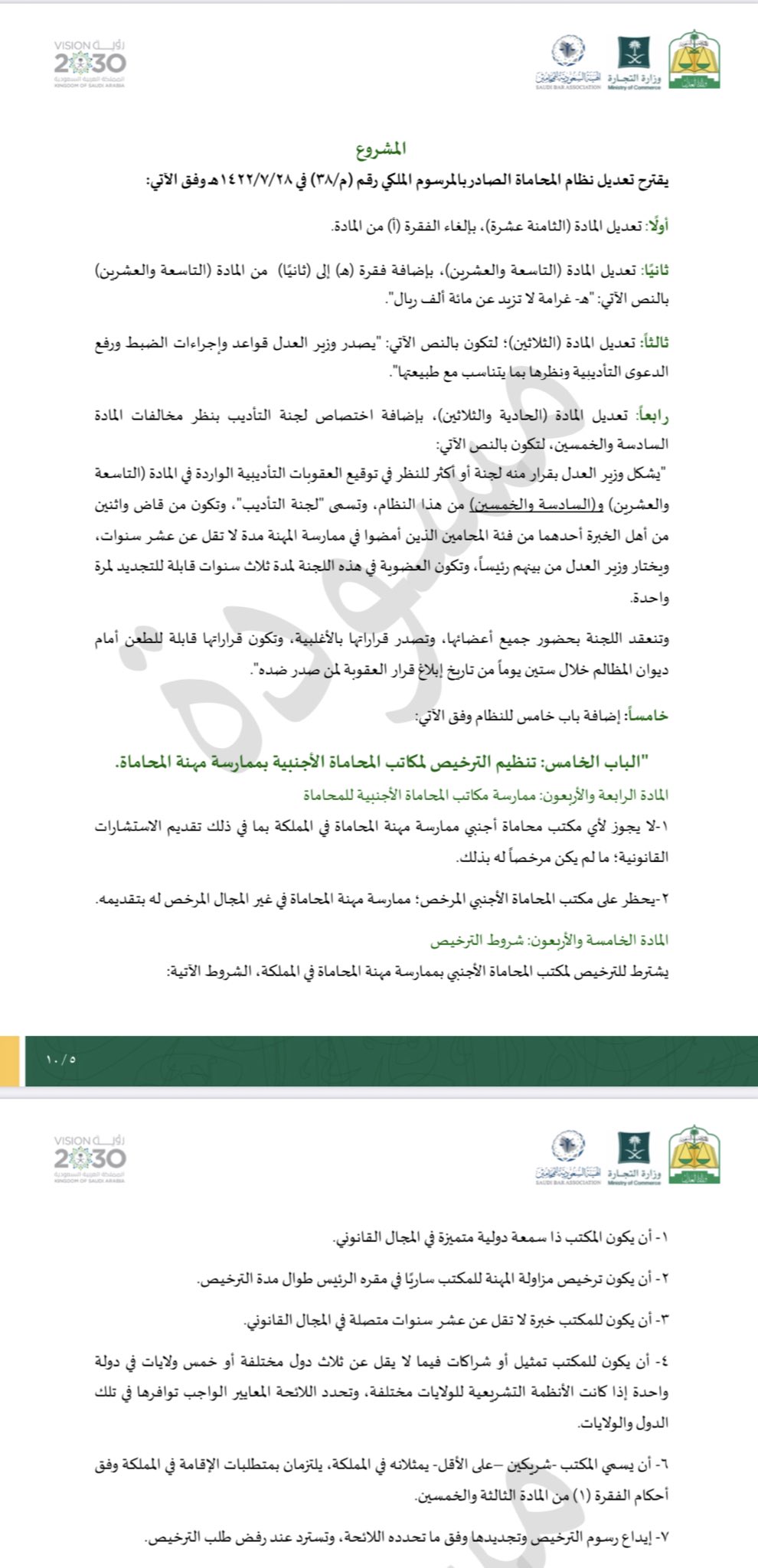 المحامي الإلكتروني On Twitter مسودة تعديل نظام المحاماة شملت إلغاء وتعديل وإضافة عدد من المواد حصر الترافع على المحامين تنظيم الترخيص لمكاتب المحاماة الأجنبية تسجيل المستشارين غير السعوديين