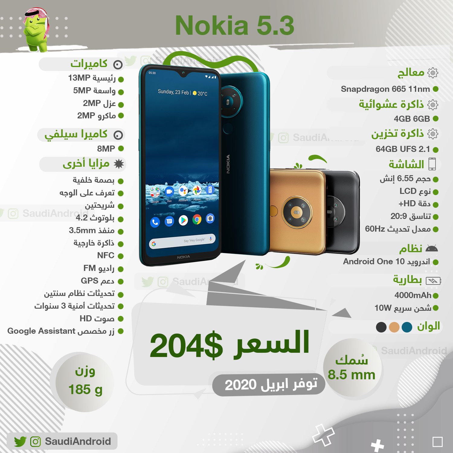 سعودي اندرويد On Twitter جديد شركة نوكيا هاتف Nokia 5 3 مواصفات مزايا هاتف نوكيا 5 3 هاتف من الفئة الرخيصة Nokiamobilelive Nokia Https T Co S2rjfugg8x