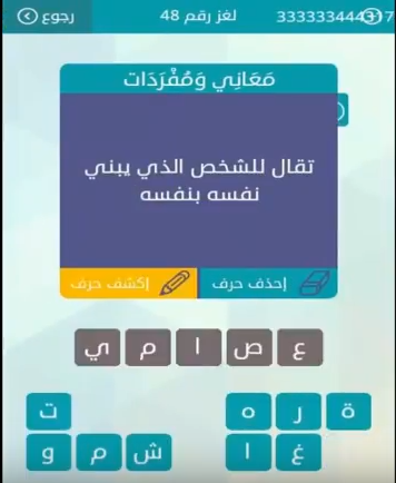 جواب سؤال تقال للشخص الذى يبنى نفسه بنفسه لغز رقم 48 من لعبة وصلة فى المجموعة السادسة صقور الإبدآع